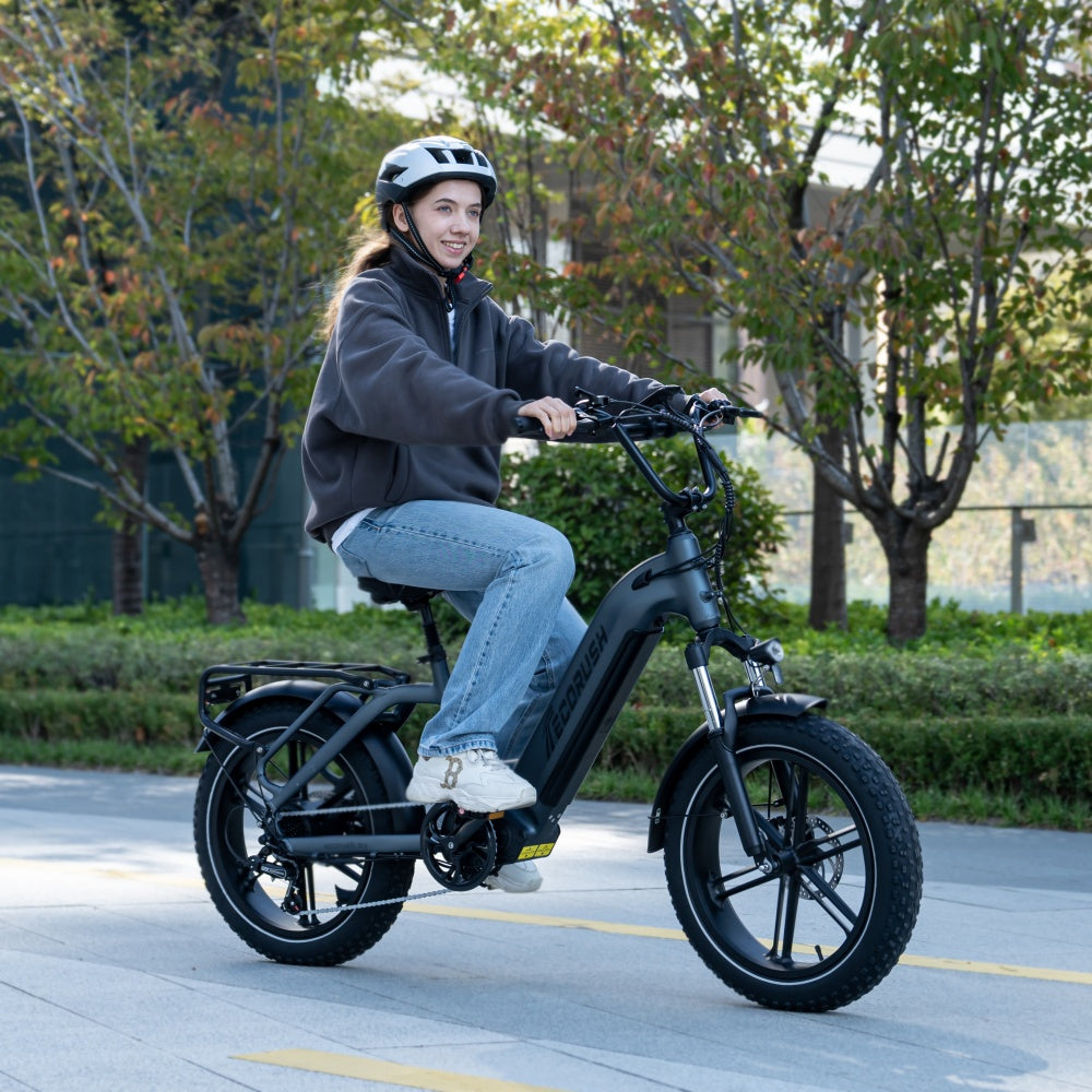 I love this e-bike with 26*4.0 inch tires. The thick tires are suitable for different terrains, and the suspension seat ensures a pleasant ride.
