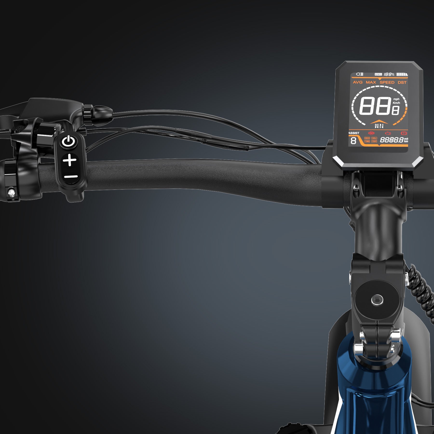 The ECO R1 features a centrally mounted, full-color multifunctional display that shows essential information like speed, battery level, pedal assist level, and mileage. This clear interface allows riders to monitor and control their ride seamlessly.
